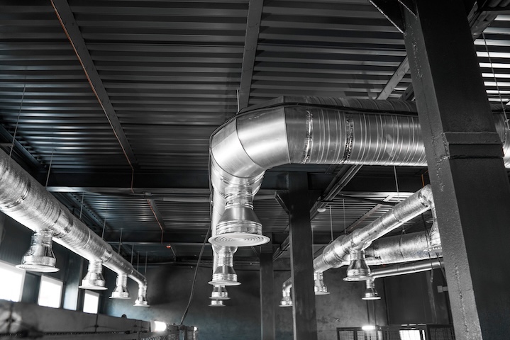 「ダクト」とは、空気や煙、蒸気などを通すための配管(管路)のことです。